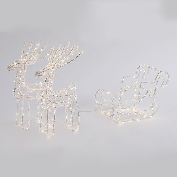 LED Pre-Lit Acrylic Two Reindeer with Sleigh