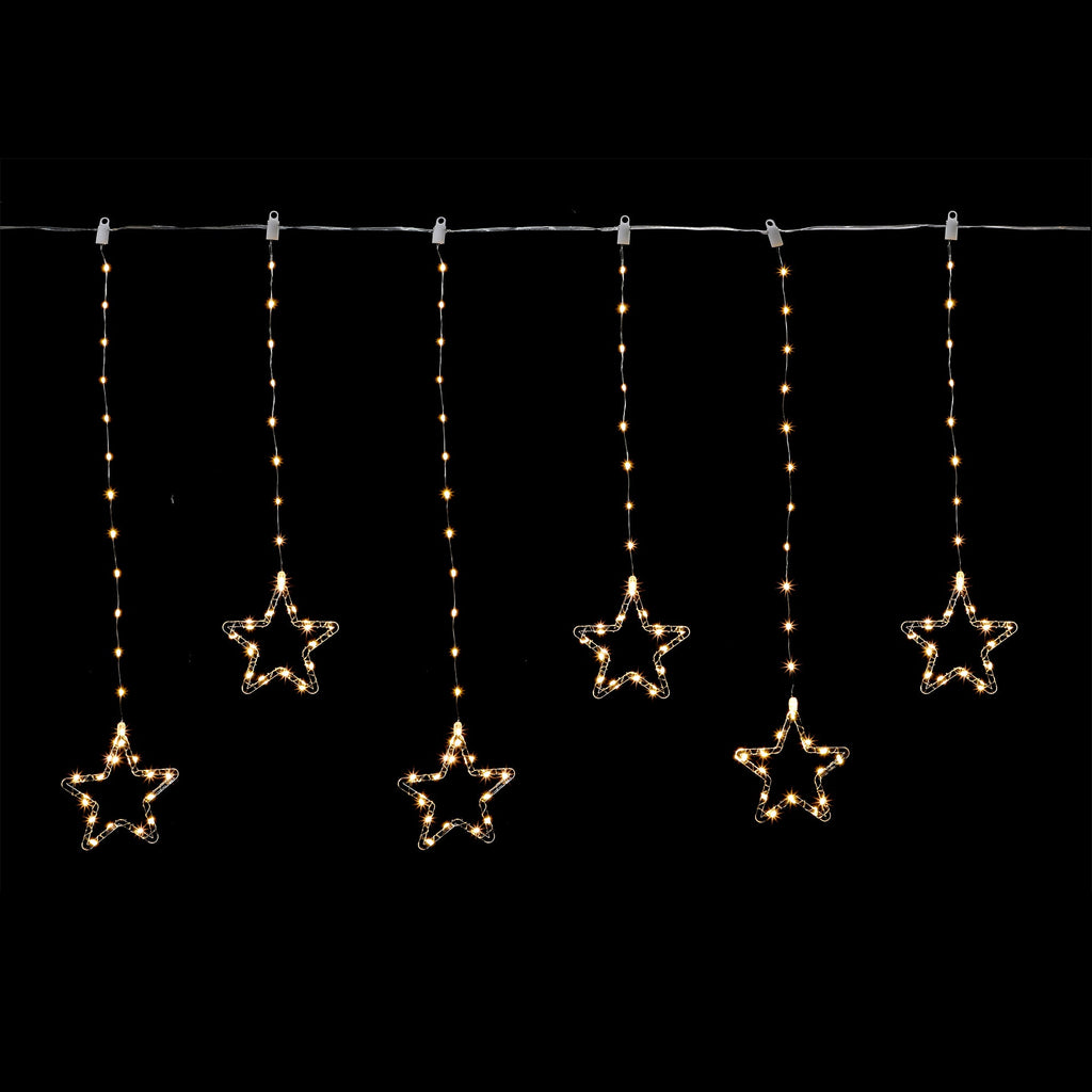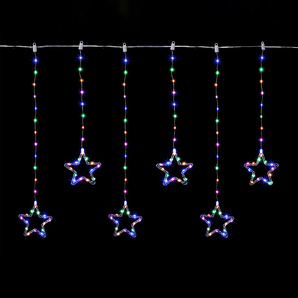 / 200cm Waterfall Curtain with stars - Multicolour/Warm White