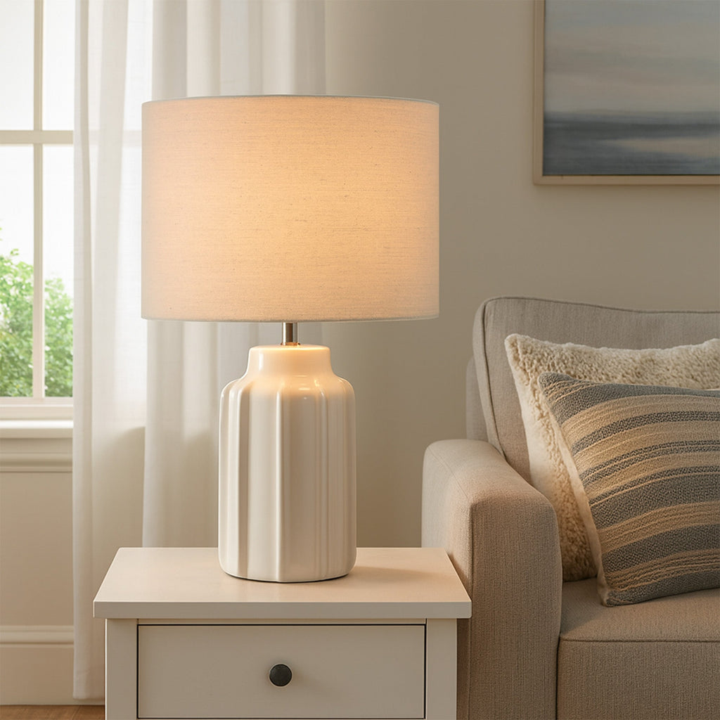The Lana Ceramic Table Lamp, a masterfully crafted fusion of natural texture and modern elegance designed to elevate your interior spaces.Perfect for adding a layer of cozy, textured light to your bedroom nightstand, living room side table, home office, or reading nook, the Lana Table Lamp serves as a versatile decorative statement piece that seamlessly blends timeless design with everyday functionality for a truly inviting atmosphere.