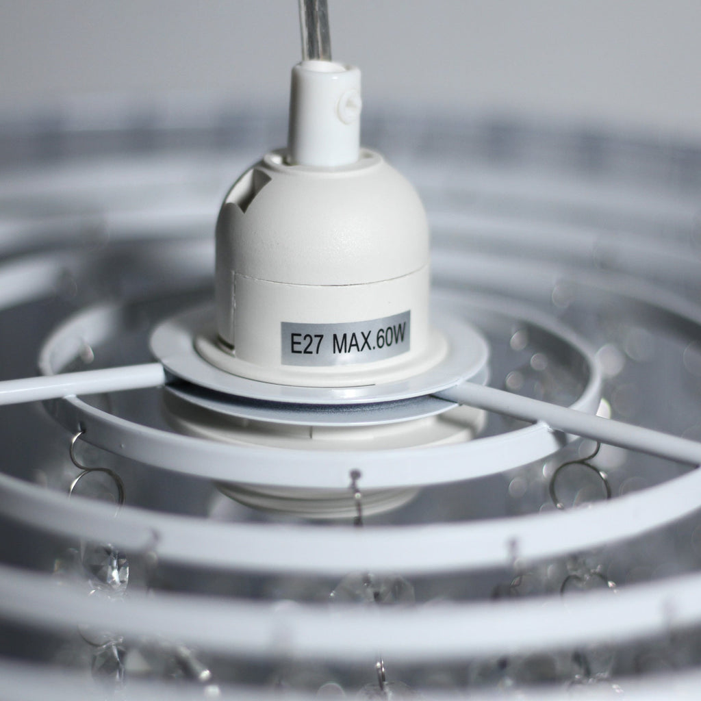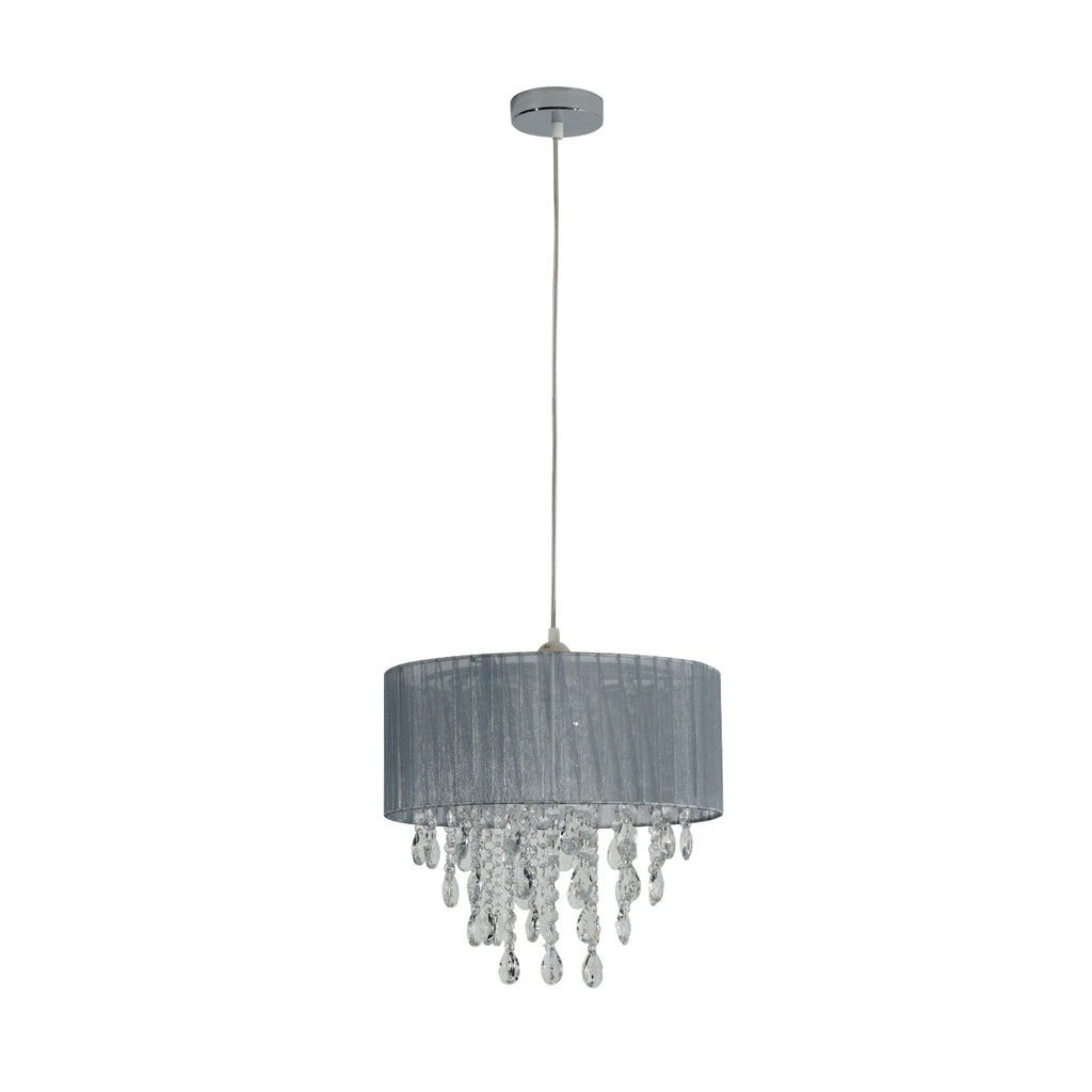 However, the acrylic crystal gems that drop below the shade in a staggered formation add the glitz to the Delia Chandelier. And the good news, only one E27 globe is needed to provide a warm chandelier glow.