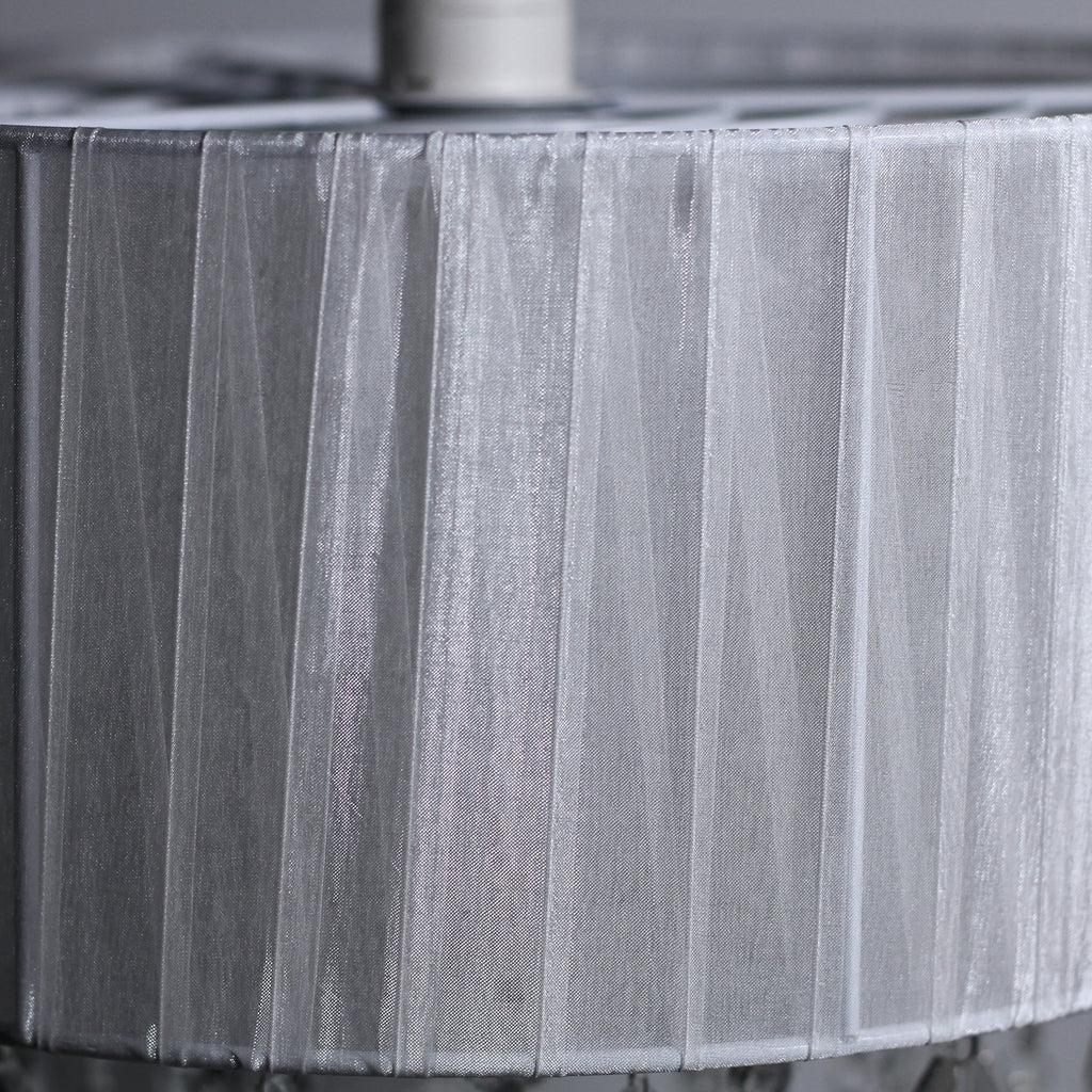Whether the Delia Chandelier is installed for some bedroom elegance, a bit of glamour for mundane space or as a focal point to an entry hall, it's beautiful design will not disappoint. The white fabric drum shade suits most home decors you choose to add it to, hanging simply yet exquisitely from the ceiling. While the strong metal shade frame ensures it will keep its form over time.