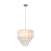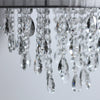 However, the acrylic crystal gems that drop below the shade in a staggered formation add the glitz to the Delia Chandelier. And the good news, only one E27 globe is needed to provide a warm chandelier glow.