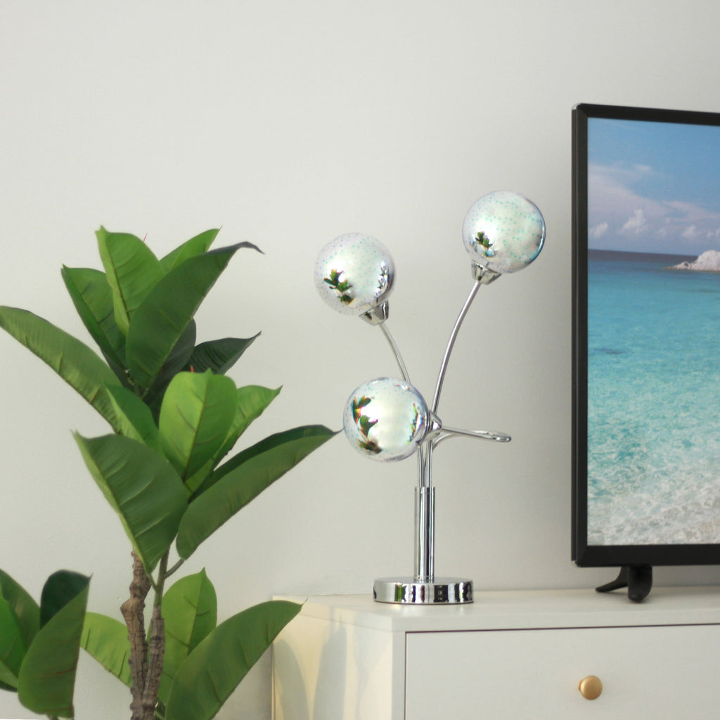 When off, the Candice Table and Floor Lamp have a chrome ball appearance. When switched on, the spheres produce a sparkling glow and appear futuristic to grab the attention of all who view it. The Candice lamp can be used in any room of the house where you wish to have a light with a difference.