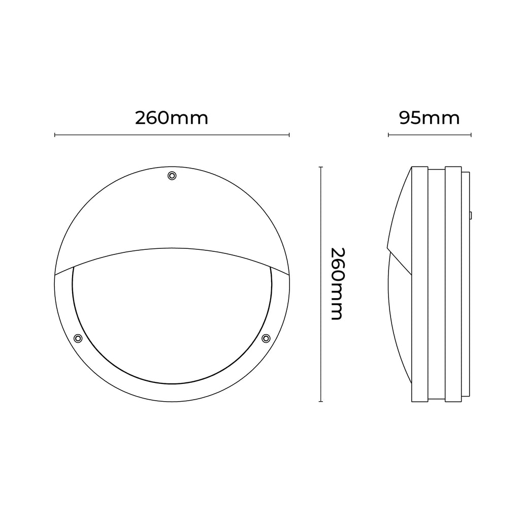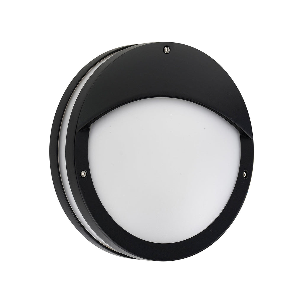 The Omira CCT LED Lunar Light Fixture with Eyelid elevates your indoor or outdoor spaces with this premium, contemporary black fixture featuring a distinctive "eyelid" design, engineered for versatile flush mounting on walls or ceilings in corridors, hallways, laundry rooms, closets, bedrooms, bathrooms, kitchens, garages, or covered outdoor areas.